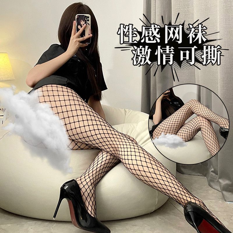 (情趣内衣)情趣网袜内衣性感超薄激情黑丝诱惑透明免脱火辣床上调情渔网袜